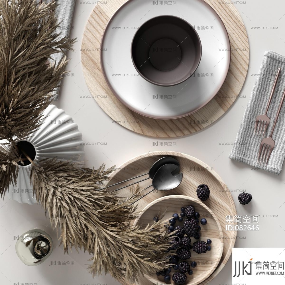 北欧现代餐具,盘子刀叉,花瓶果盘 (1) 3d模型下载 [模型ID:82646]