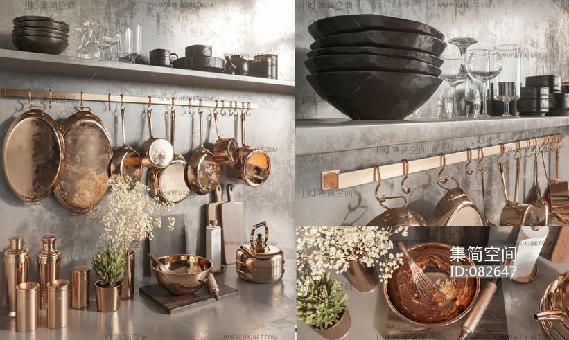 欧式金属厨具,平底锅,水壶 3d模型下载 [模型ID:82647]