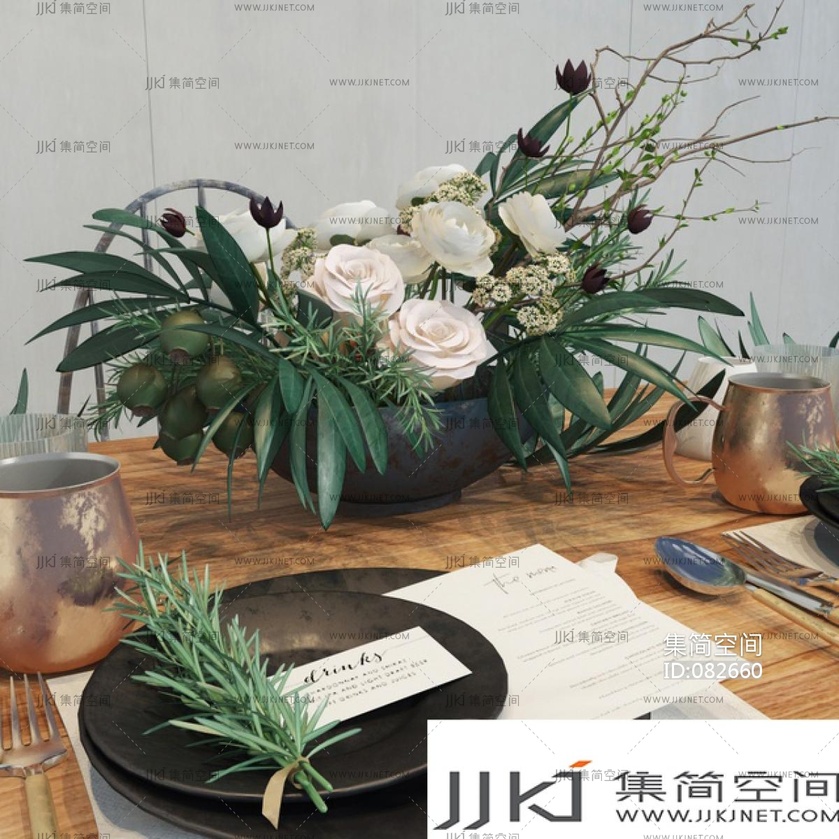 现代餐具玫瑰花 3d模型下载 [模型ID:82660]