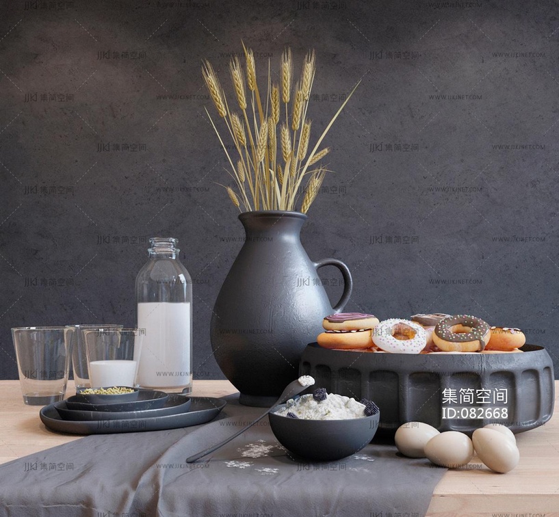 餐具鸡蛋麦穗糕点,蛋糕 3d模型下载 [模型ID:82668]
