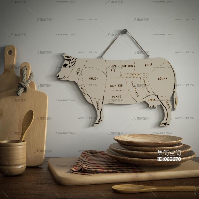 北欧木质餐具牛,菜板子 3d模型下载 [模型ID:82670]
