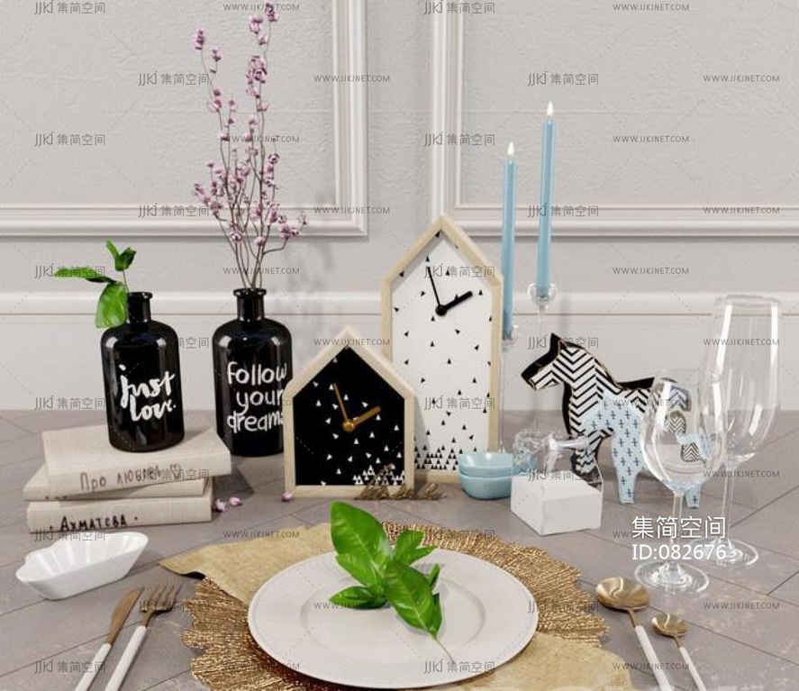 北欧现代金属餐具餐桌饰品摆件 3d模型下载 [模型ID:82676]