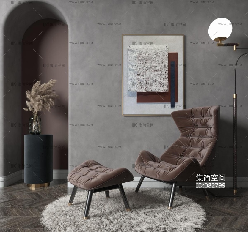 北欧现代皮革休闲椅子,脚凳,边几落地灯 3d模型下载 [模型ID:82799]