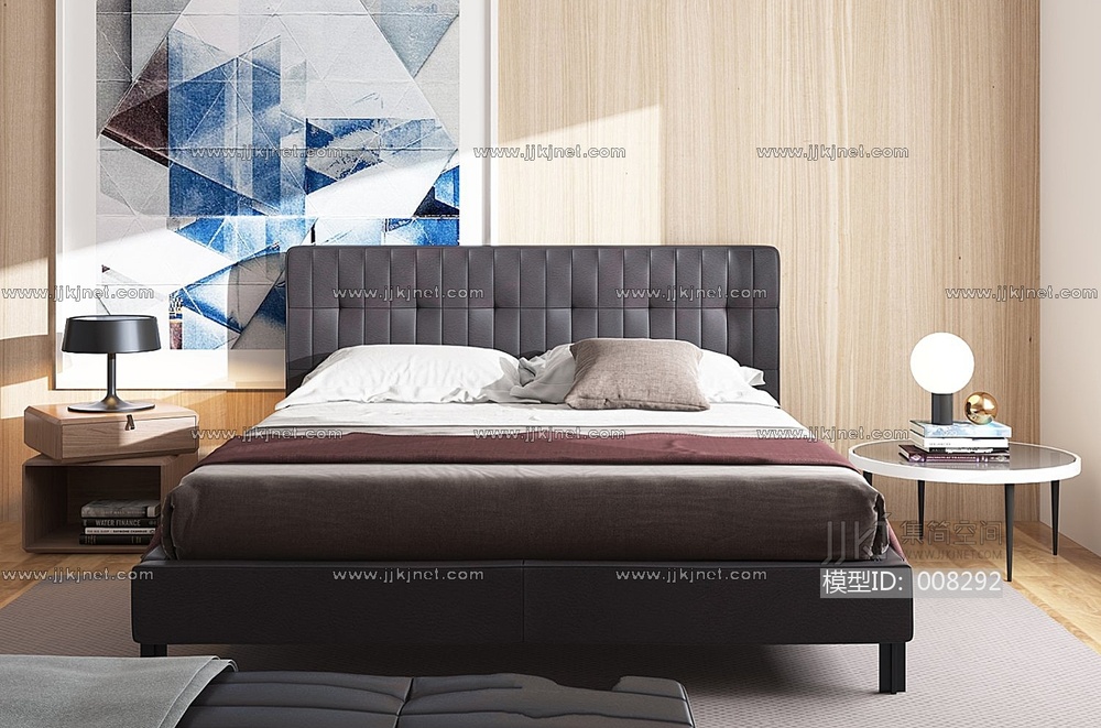 18-1024现代床 3d模型下载 [模型ID:8292]