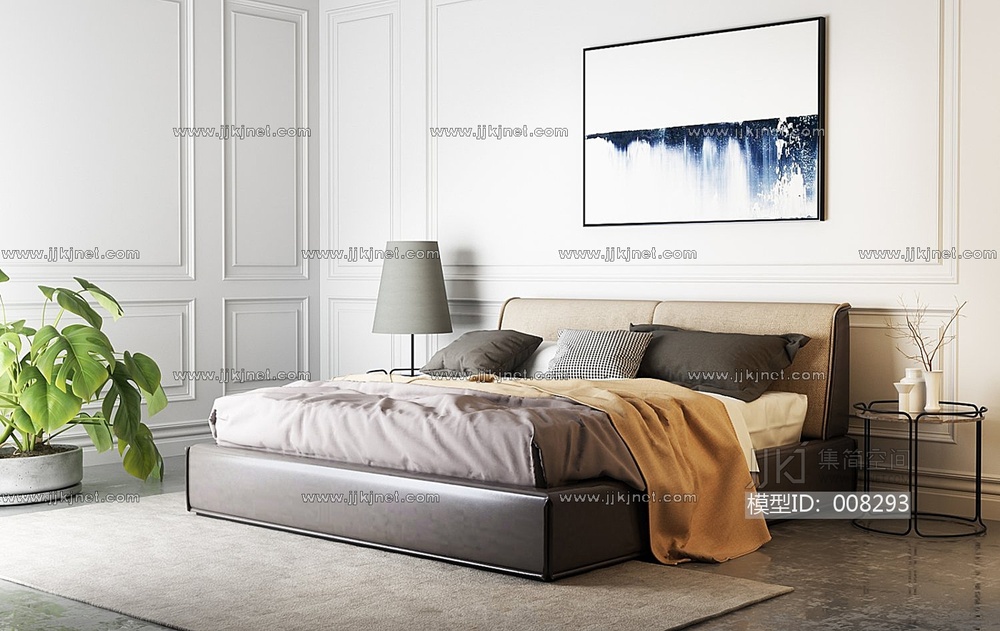 21-1024现代床 3d模型下载 [模型ID:8293]
