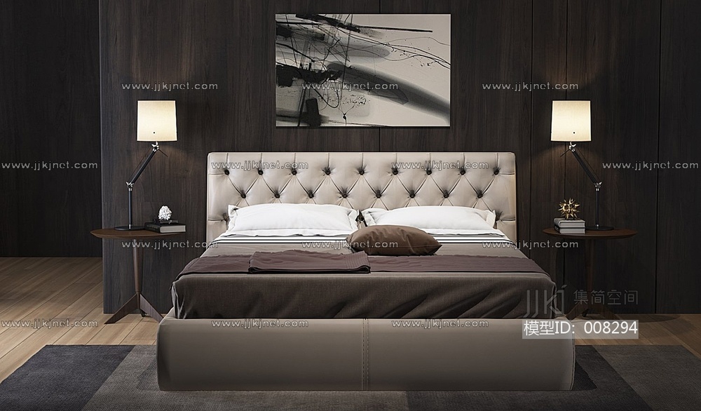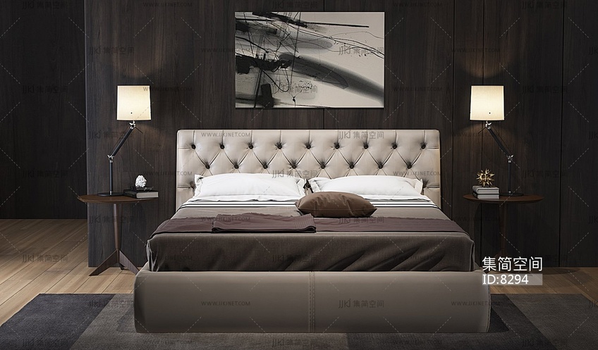 22-1024现代床 3d模型下载 [模型ID:8294]