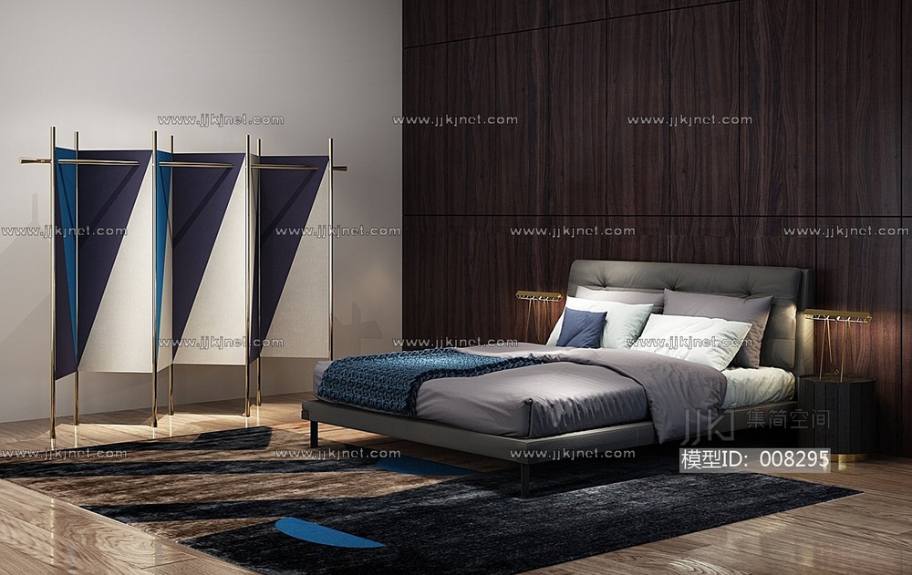 23-1024现代床 3d模型下载 [模型ID:8295]