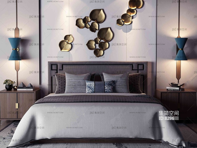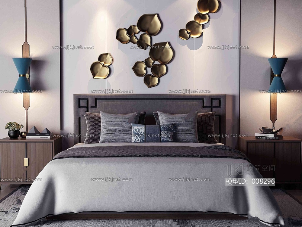50-1024新中式床 3d模型下载 [模型ID:8296]