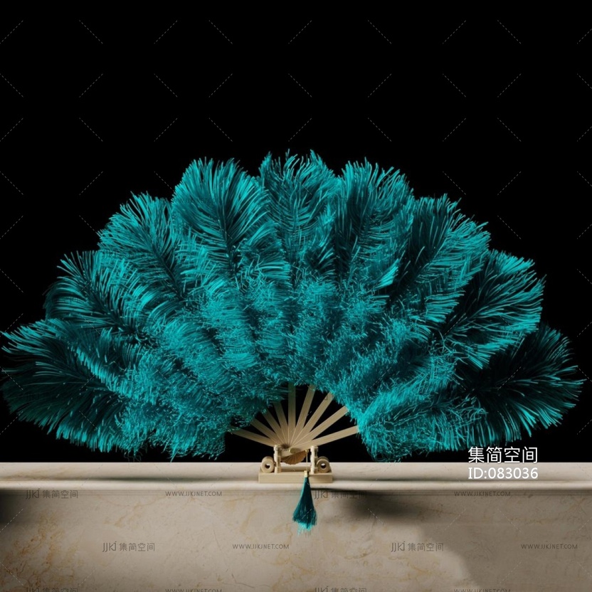 新中式羽毛扇子装饰品摆件 3d模型下载 [模型ID:83036]