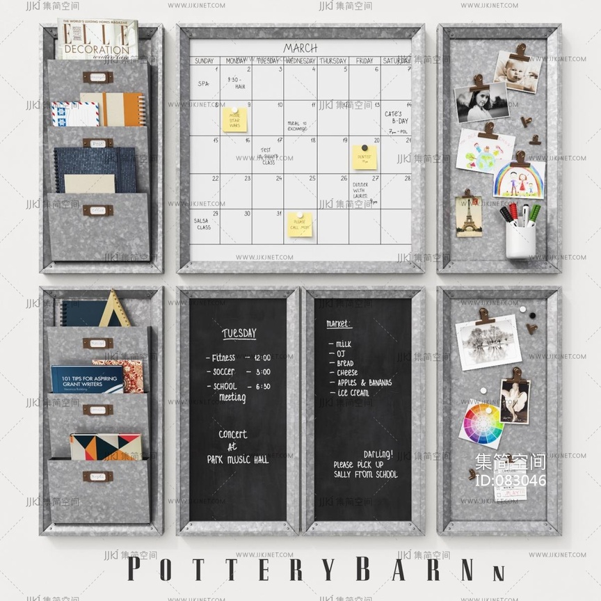 现代白板刨花板软木欧松板便签办公装饰墙照片墙3d模型下载
