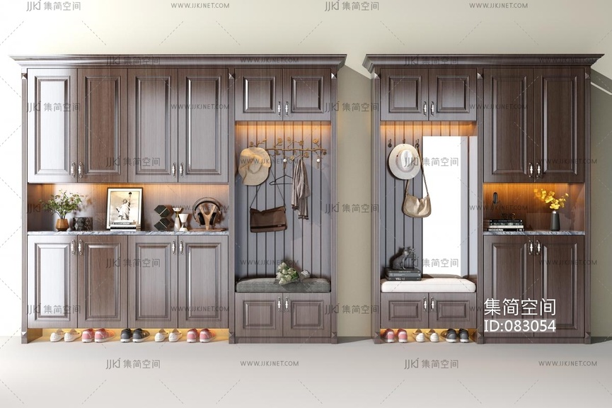 美式欧式入口玄关鞋柜 3d模型下载 [模型ID:83054]