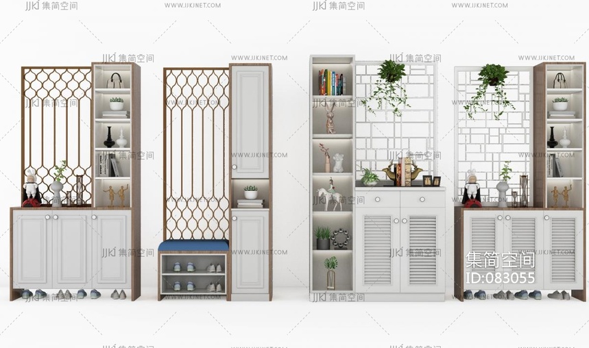 现代简欧式入口玄关鞋柜,鞋子 3d模型下载 [模型ID:83055]