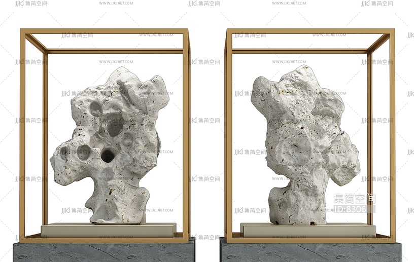 H22-1020新中式洞石摆件 3d模型下载 [模型ID:8306]