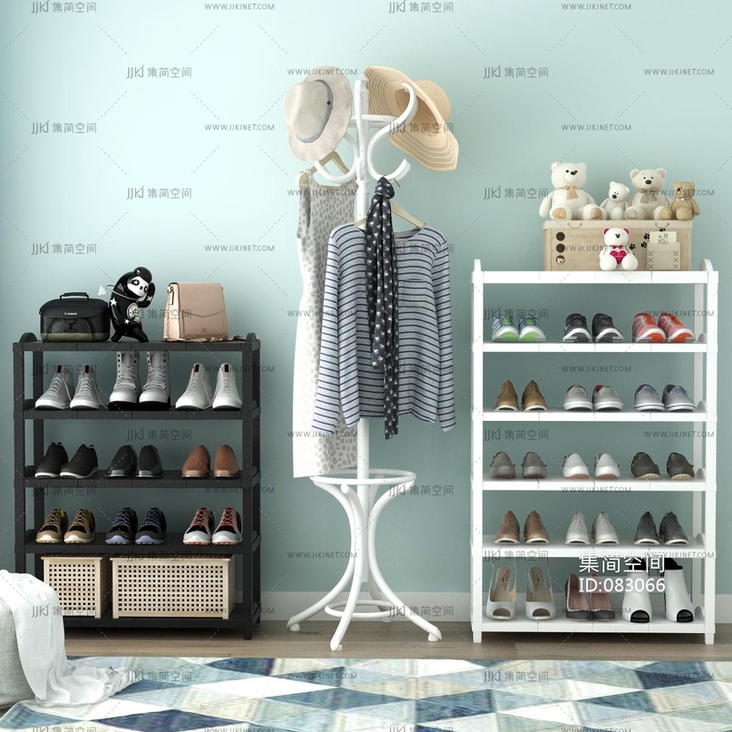 现代鞋架,鞋柜,衣架鞋子 3d模型下载 [模型ID:83066]