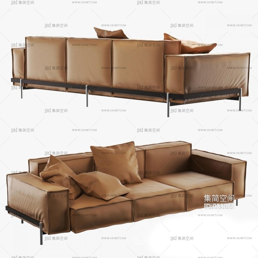 现代办公皮革三人沙发 3d模型下载 [模型ID:83068]