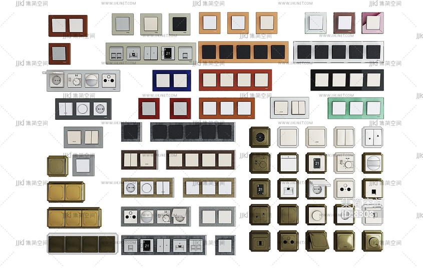 H04-1020开关五金组合 3d模型下载 [模型ID:8308]