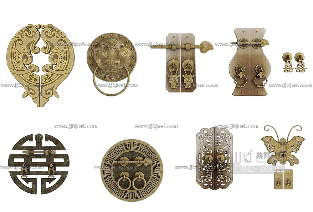 H07-1020中式古风五金件组合 3d模型下载 [模型ID:8311]