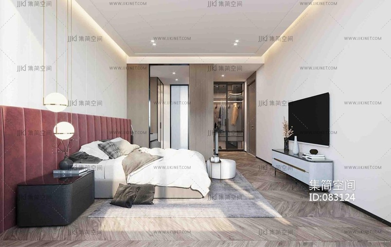 现代主卧室衣帽间,双人床电视柜 3d模型下载 [模型ID:83124]
