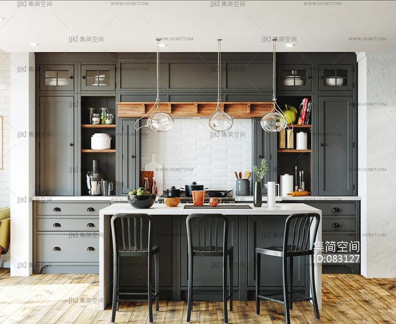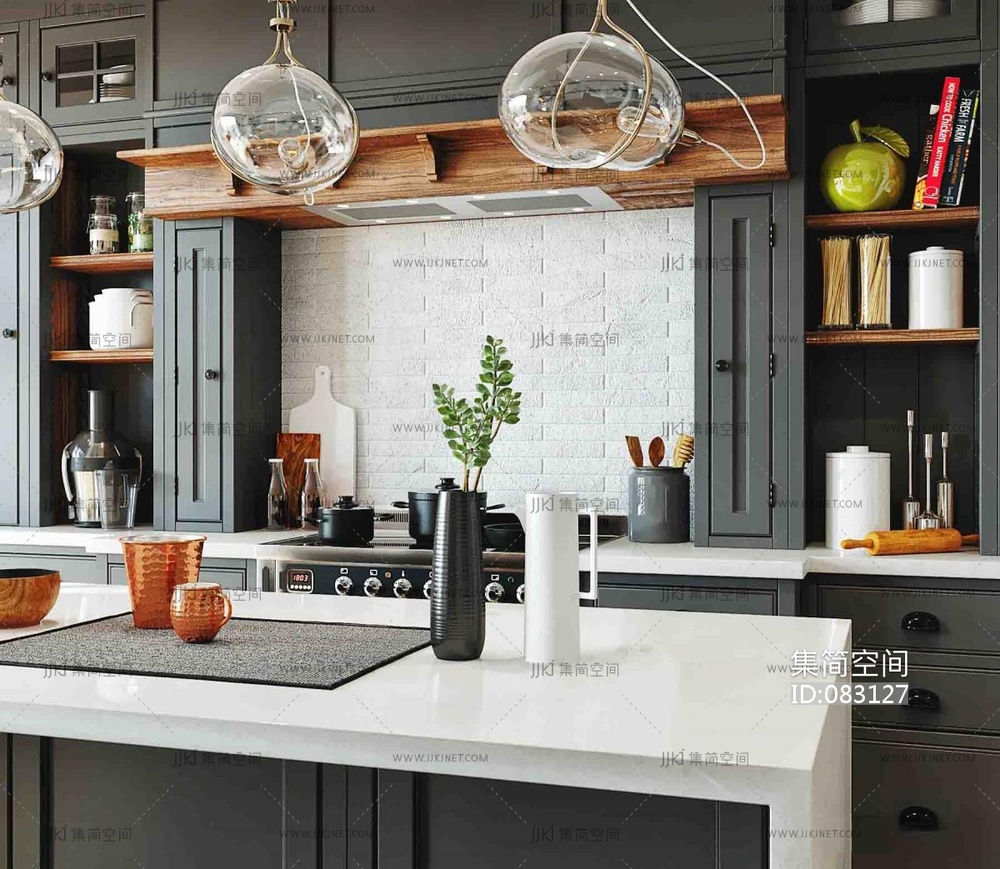北欧现代厨房橱柜,岛台中岛柜 3d模型下载 [模型ID:83127]