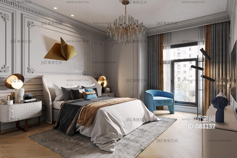 6法式中古家居卧室_主卧_飘窗卧室_高级灰卧室3D模型cr3d模型下载