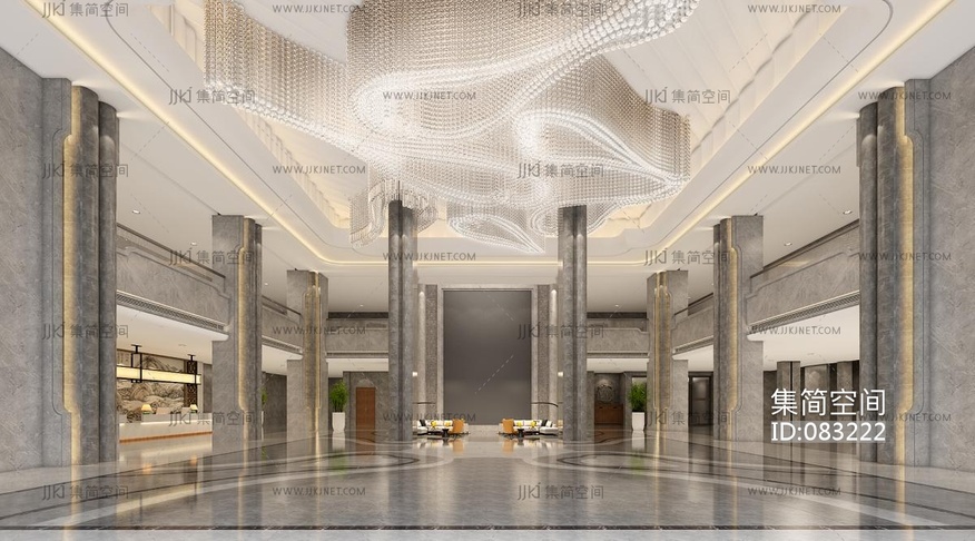 酒店大堂,水晶吸顶灯 3d模型下载 [模型ID:83222]