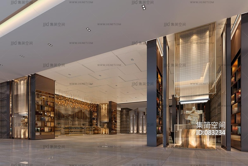 现代新中式酒店大堂,服务台 3d模型下载 [模型ID:83234]