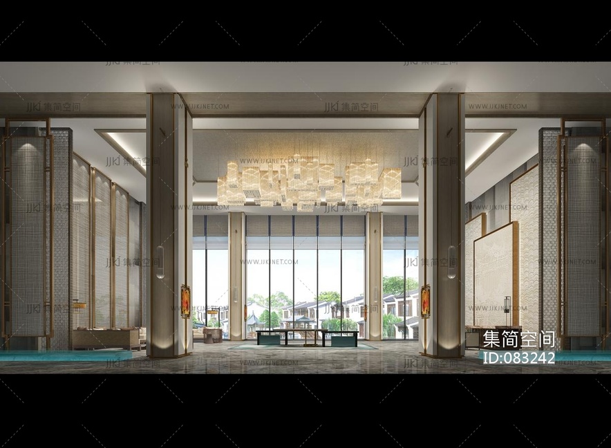 新中式酒店大堂,大堂吧 3d模型下载 [模型ID:83242]