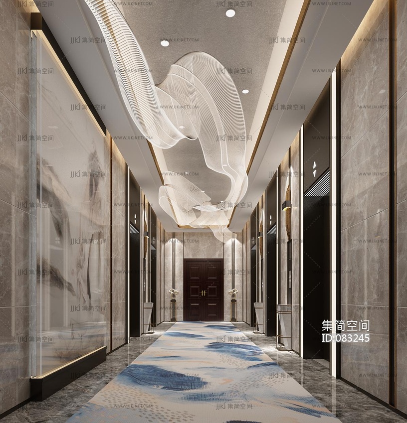 现代酒店电梯厅, 3d模型下载 [模型ID:83245]