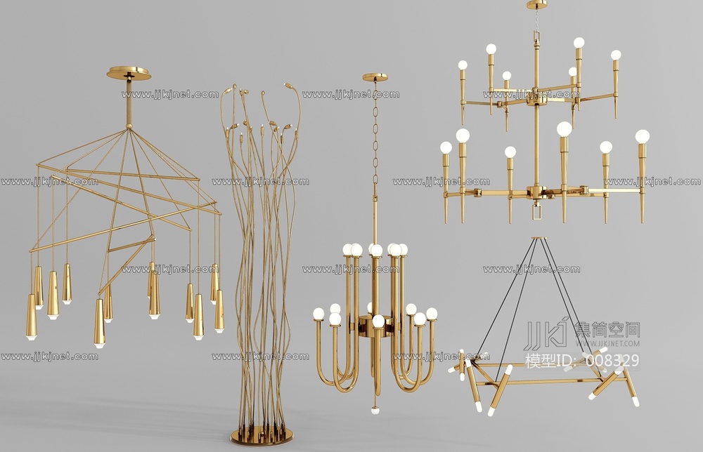 H08-1016现代金属吊灯 3d模型下载 [模型ID:8329]