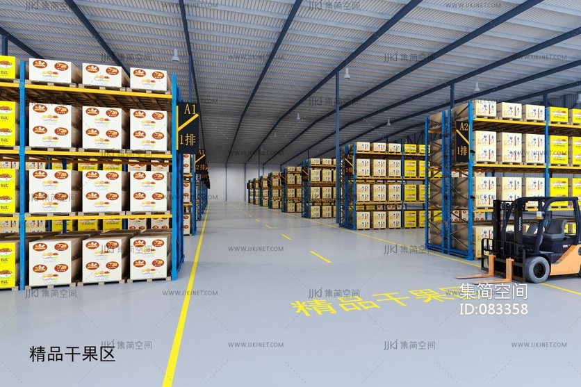物流仓库干果区 3d模型下载 [模型ID:83358]