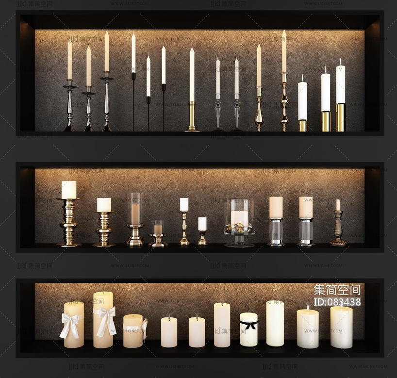 餐桌装饰蜡烛,香薰蜡烛,烛台组合 3d模型下载 [模型ID:83438]