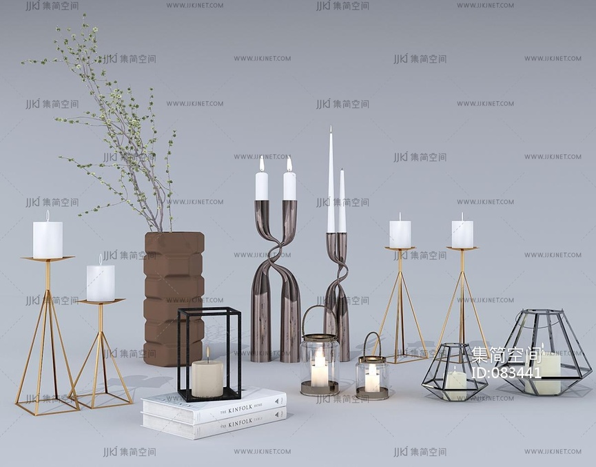 现代简约蜡烛_金属烛台_玻璃烛台_烛台_书本烛台摆件3D模型3d模型下载