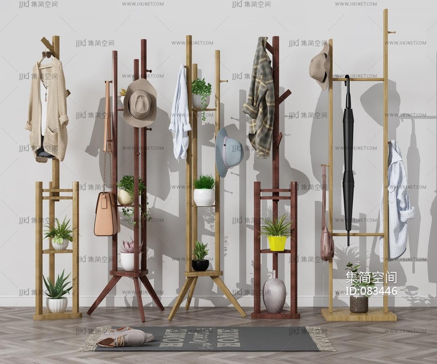 现代木质衣帽架,落地挂衣架 3d模型下载 [模型ID:83446]