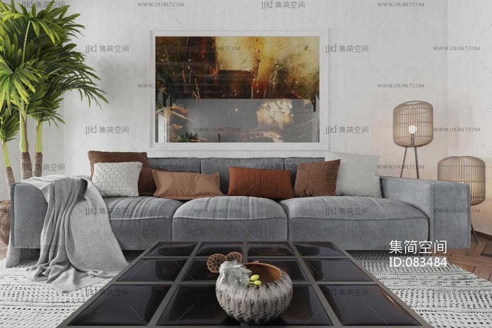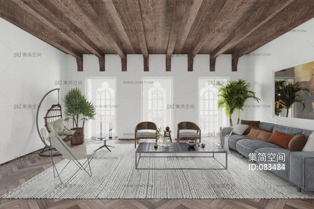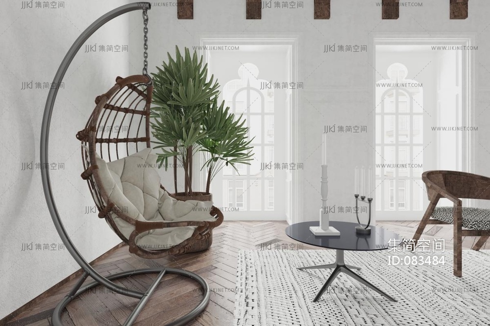北欧现代客厅沙发,吊椅,茶几椅子 (1) 3d模型下载 [模型ID:83484]