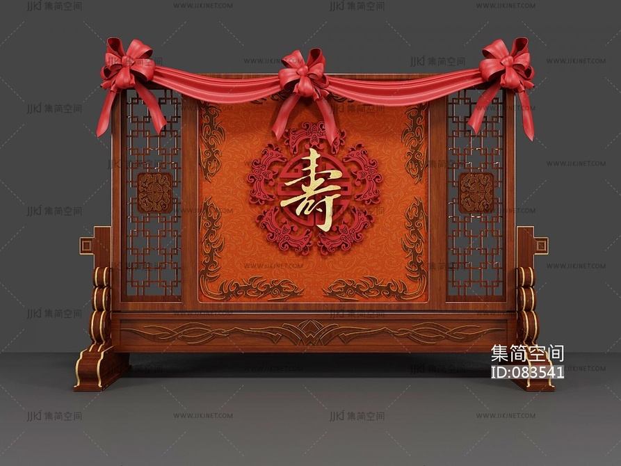 雕花寿宴屏风壁照屏风隔断 3d模型下载 [模型ID:83541]