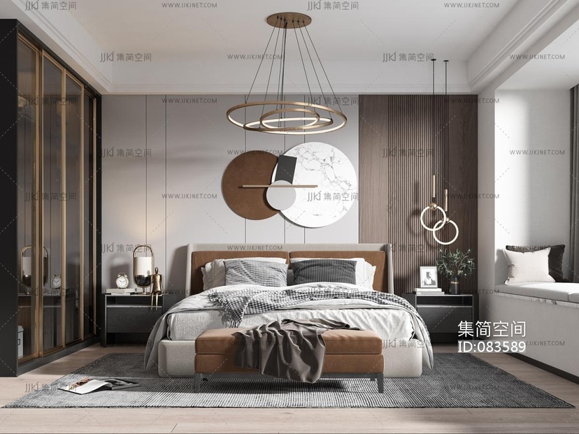 现代样板间卧室双人床,床头柜 3d模型下载 [模型ID:83589]