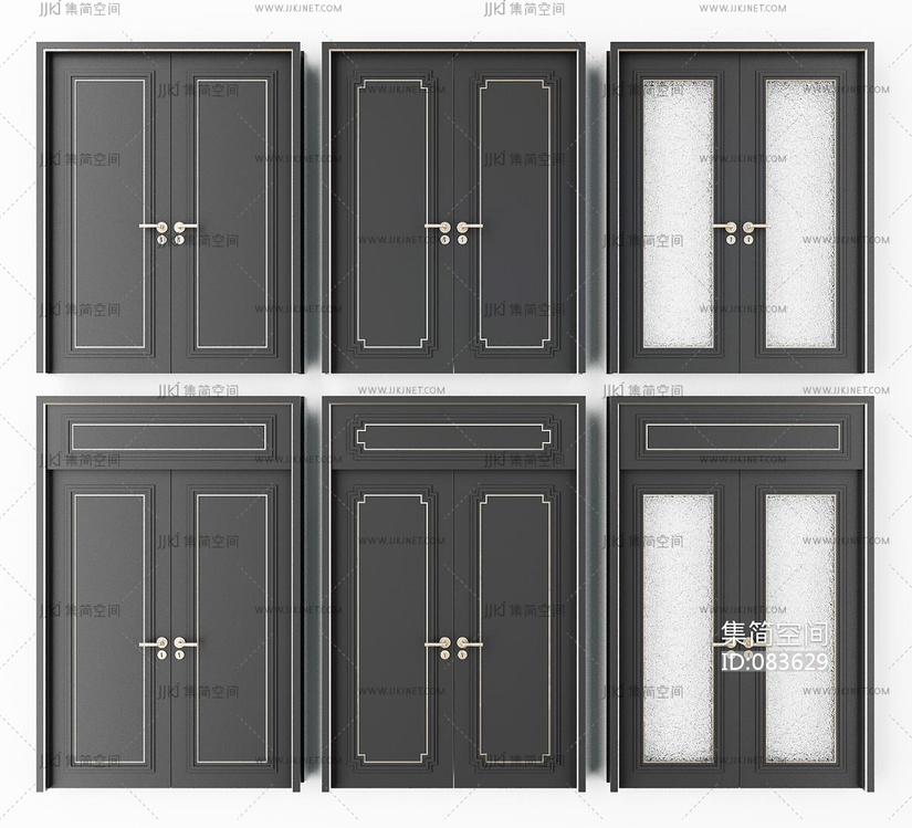 中式简欧式玻璃双开门,门把手 3d模型下载 [模型ID:83629]