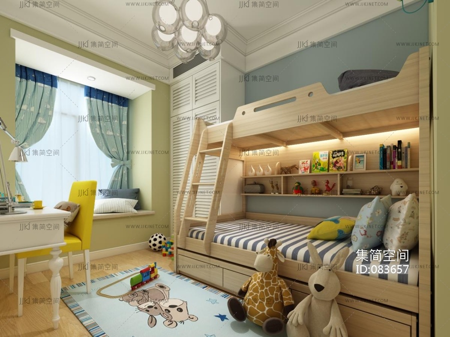 现代儿童房,上下铺床 3d模型下载 [模型ID:83657]