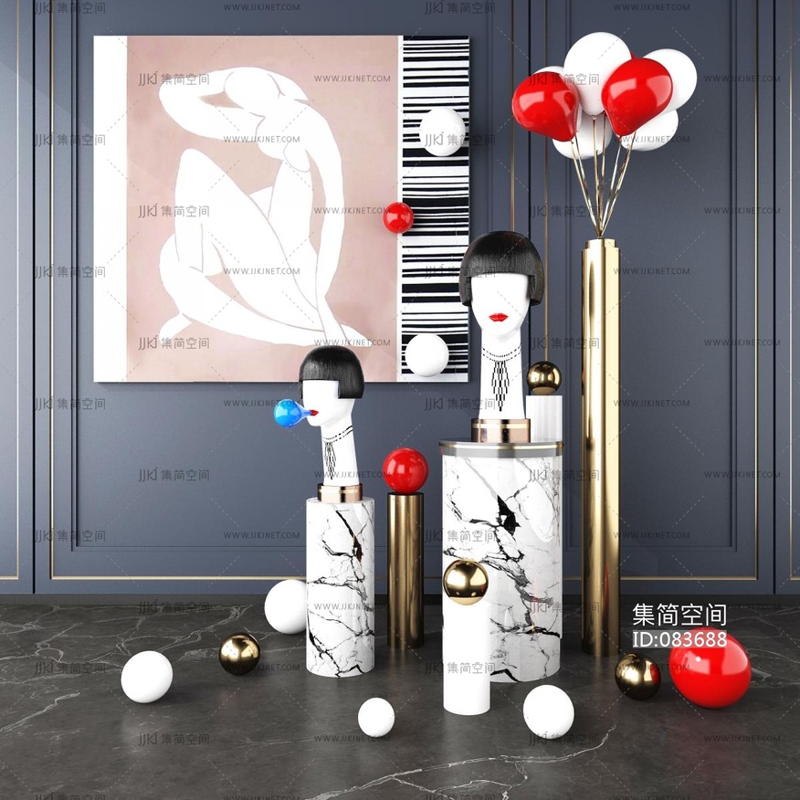 后现代日式人物雕塑摆件,摆台气球摆件 3d模型下载 [模型ID:83688]
