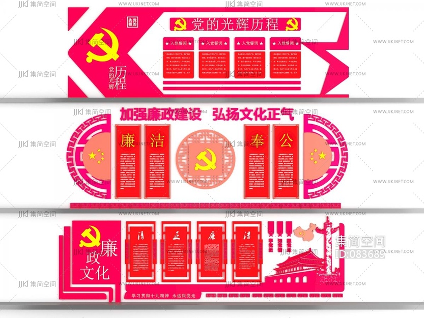 现代党建,文化墙展示墙面宣传栏 3d模型下载 [模型ID:83689]
