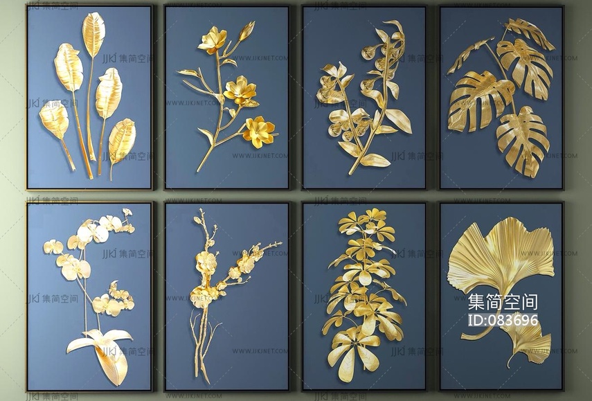 新中式树叶立体植物画,挂画 3d模型下载 [模型ID:83696]
