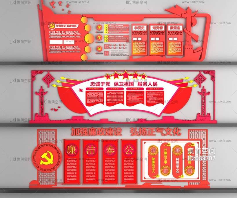党建廉洁廉政,宣传文化墙 3d模型下载 [模型ID:83702]