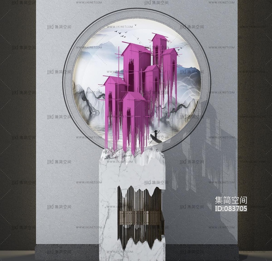 新中式房屋雕塑,雕像摆台摆件艺术品 3d模型下载 [模型ID:83705]
