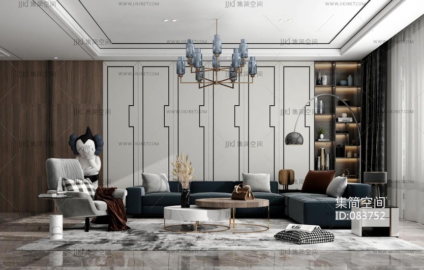 简约风格客厅。转角沙发 3d模型下载 [模型ID:83752]