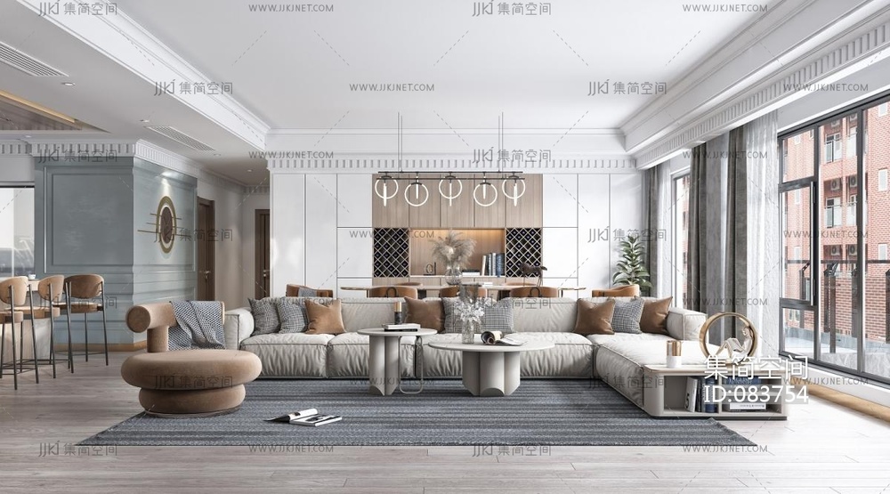 轻奢客厅,餐厅厨房, 3d模型下载 [模型ID:83754]