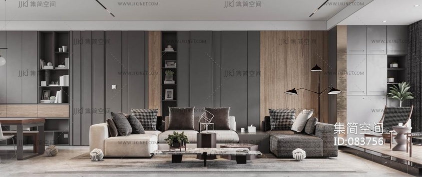 现代客厅餐厅,沙发 3d模型下载 [模型ID:83756]