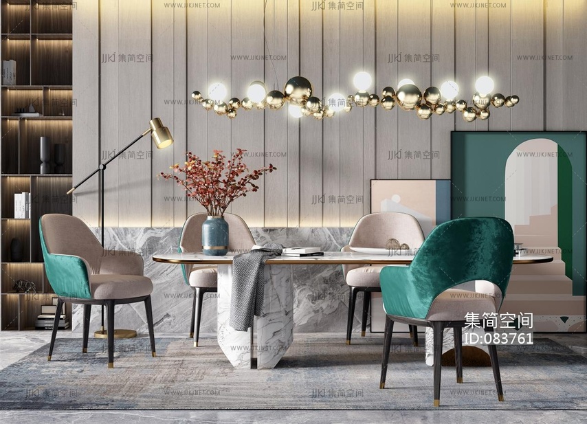 现代轻奢,简欧式时尚餐桌椅,长条吊灯 3d模型下载 [模型ID:83761]