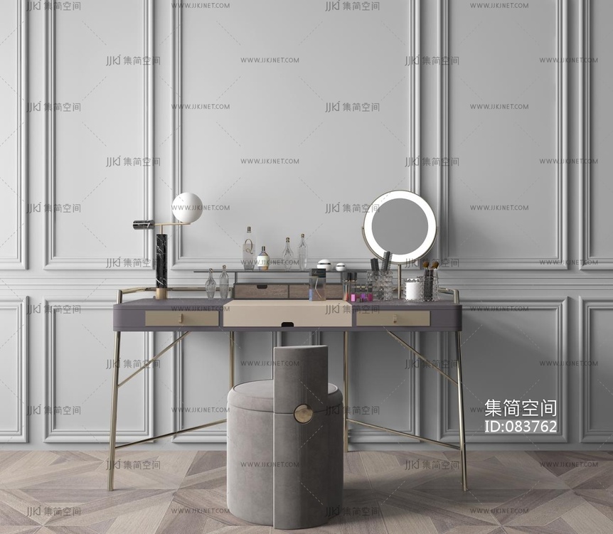 现代轻奢梳妆台,化妆凳化妆镜 3d模型下载 [模型ID:83762]
