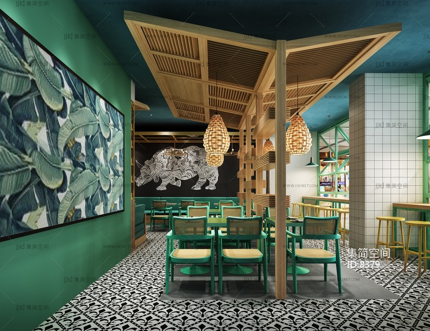 004-1022现代民宿绿色餐厅桌椅 3d模型下载 [模型ID:8379]