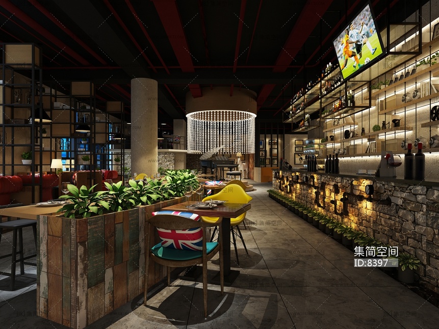 026-1022工业风餐厅 3d模型下载 [模型ID:8397]